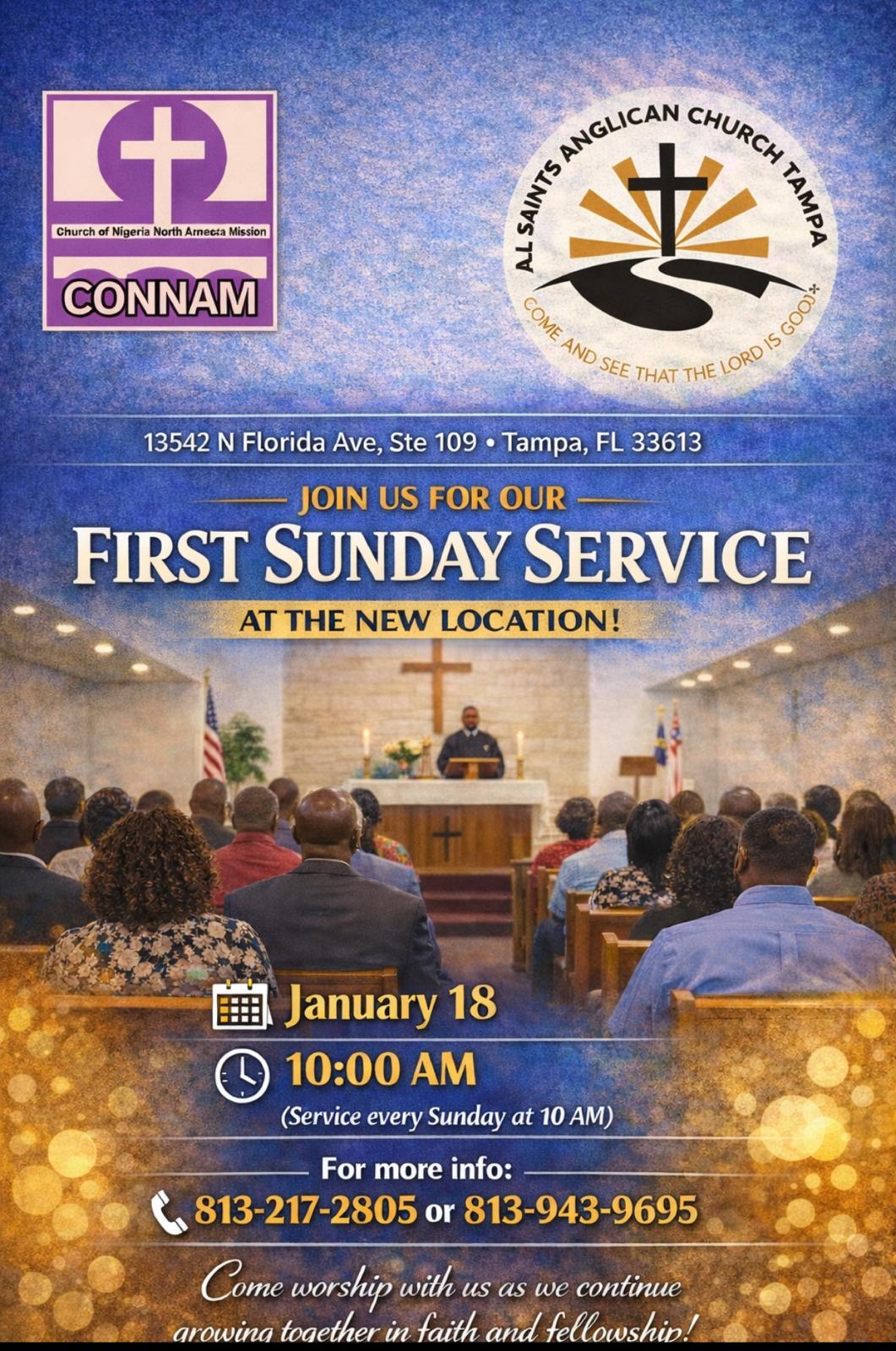All Saints’ Anglican Church, Tampa joyfully announces its First Sunday Service at its new worship location, marking an important milestone in the life and mission of the congregation.